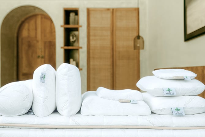 Heveya® latex pillows are recommended by healthcare professionals for their premium support and comfort. Available in different firmness levels and shapes, you will surely find your match!